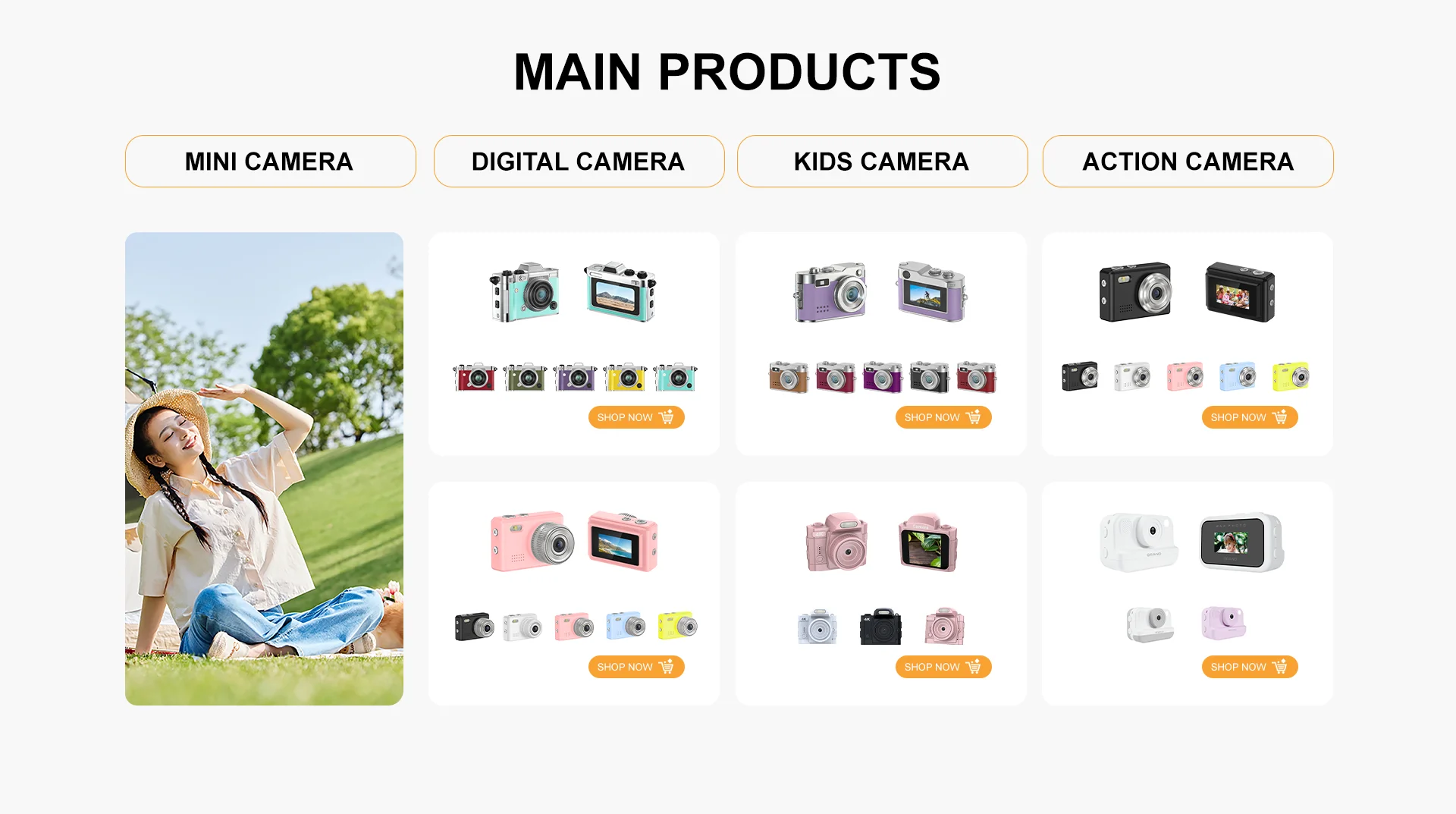 Основные продукты:Экшн-камера, Детская камера, Цифровая камера, Велосипедная камера, Водонепроницаемая камера